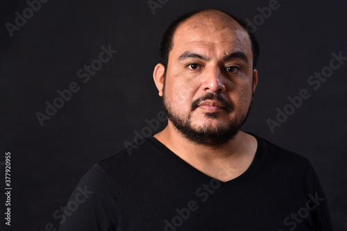 portrait of a latin american man on black background,serious