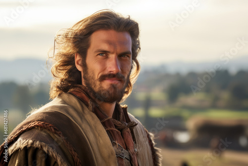 Portrait of a man dressed like Vercingetorix the historic gallic king who united Gauls in ancient France