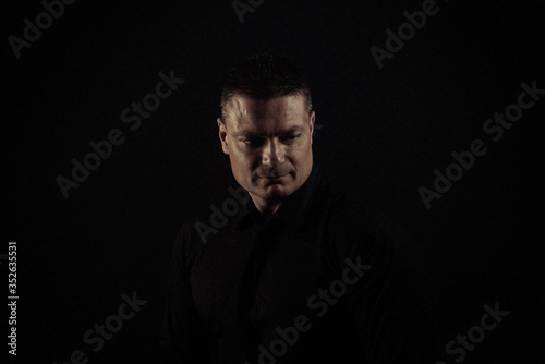 portrait, face, black, photogenic, dark, young, person, guy, serious, people, expression, beard, eye, white, human, looking, head, man, thinking, casual attire, fashion, 1, model, sad, old