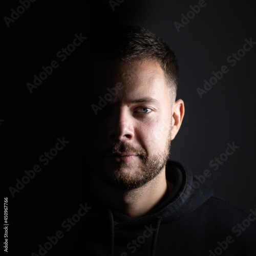 face, photogenic, guy, expression, serious, person, eye, beard, dark, head, hair, looking, model, black, closeup, people, boy, smile, fashion, worried, smiling, man, close, casual attire, 1