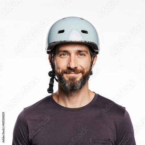 helmet, portrait, face, safety, sport, style, cycling, urban, head, protection, healthy, lifestyle, active, attractive, confident, contemporary, design, equipment, fashionable, individual, modern, person, secure, smile, happy, beard, look, stylish, accessory, clean, visual, focused, good-looking, wearing, human, smiling