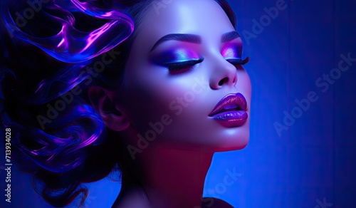 woman, beauty, fashion, female, face, portrait, model, young, glamour, hair, lady, caucasian, make-up, style, art, coiffure, person, blue, bright, fantasy, colourful, creative, sexy, attractive, light, make-up, skin, pink, red, trendy, eye, party, purple, colourful, neon, stylish, night, long, lip, concept, adult, studio, sensuality, background, green, 1, dark, body, disco