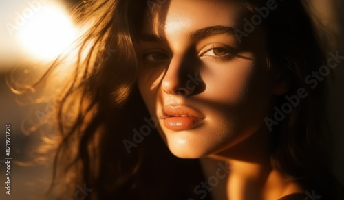 portrait of a model on a sunny day shadows fall on the face and create a beautiful picture
