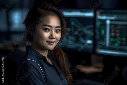 portrait of a person in an IT firm, Asian cute young lady. Generative AI