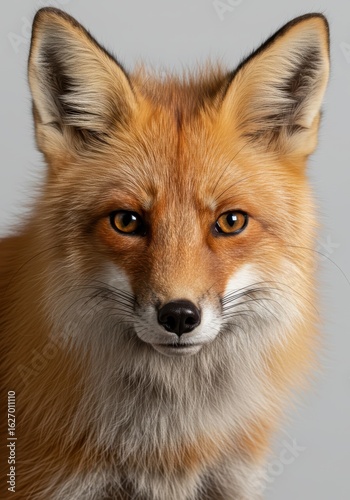 portrait, red, fox, gaze, intense, animal, wildlife, mammal, nature, fur, orange, gold, whisker, ear, eye, alert, curious, serene, peaceful, wild, rustic, outdoors, forest, timberland, closeup, head shot, beauty, grace, vulnerable, wildness, predator, creature, fauna, carnivore, animal kingdom, closeup, detailed, texture, warmth, natural, environment, portraiture