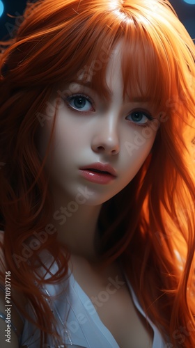 redhead, woman, portrait, girl, young, beautiful, ginger, hair, eye, lip, face, skin, caucasian, model, make-up, cosmetic, beauty, fashion, portraiture, photo, art, three-dimensional, realistic, vibrant, saturated, smooth, soft, dreamy, aethereal, mystical, enchanting