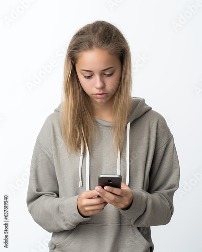 Portrait of a sad teenage girl looking at her phone