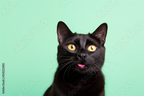 Portrait of a smiling bombay cat on solid pastel color wall