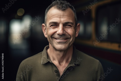 Portrait of a smiling mature man standing in a train station.