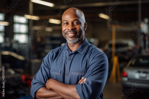 Portrait of a smiling middle aged African American male car mechanic