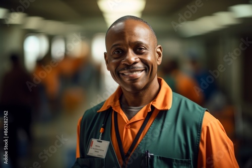 people, man, male, portrait, smiling, middle-aged, african american, occupation, work, school, maintenance, service, cleaning, facility, staff, employee, uniform, job, professional, caretaking, responsibility, hygiene, sanitation, cleanliness, public school, elementary school, high school, middle school, dependable, infrastructure, respectable, public service, lifestyle, copy space, 1