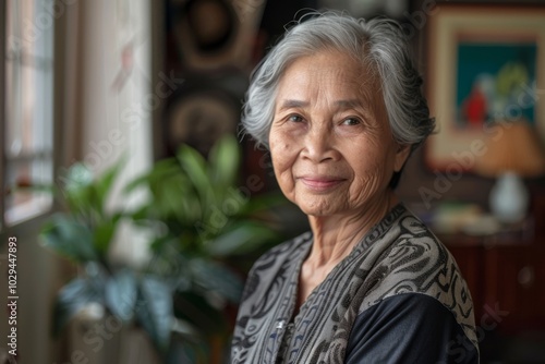 people, portrait, smiling, senior, asian, woman, home, female, happy, elderly, mature, living room, domestic, relaxed, comfortable, retirement, happiness, emotion, independent, peaceful, casual attire, positive, warm, interior, cosy, daylight, natural, relaxation, ageing, graceful, mature adult, indoor, senior citizen, tranquil, self-assured, health, wellness, confidence, 1, lifestyle, copy space