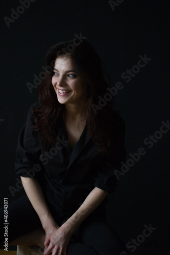 woman, portrait, beauty, young, beautiful, hair, black, fashion, face, model, brunette, person, studio, smile, glamour, dark, lady, cute, eye, people, teenage, dress, 1, looking, smiling
