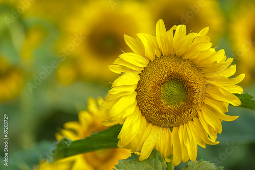 flower, sun, field, plant, food, closeup, sunlight, grain, photo, ripe, clear, nobody, many, vibrant, agriculture, green, day, yellow, leaf, sunny, sunflower, crop, summer, cloud, countryside, portrait, season, seed, close, blue, stalk, rural, sky, scenic, country, background, nature, harvest, big, landscape