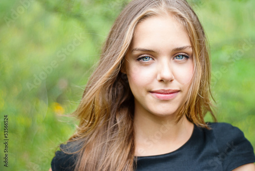 attractive, beautiful, brunette, charming, dress, face, female, feminine, foliage, fresh, fun, girl, gorgeous, grass, green, happy, joyful, laughing, nature, outdoors, park, portrait, pretty, smile, smiling, summer, teenage, woman, young, youthful