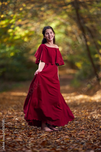 Portrait of a teenage girl in red dress