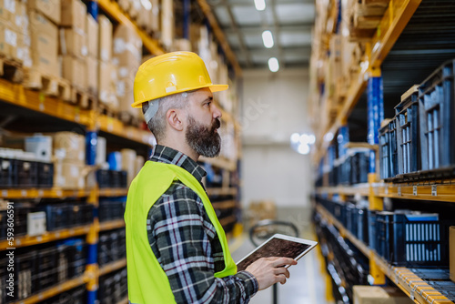 Portrait of a warehouse worker or supervisor with digital tablet.