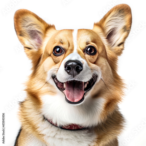 Portrait of a Welsh Corgi dog isolated on white background. Generative AI.