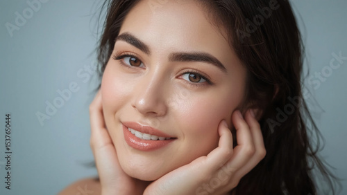 woman, beauty, face, hair, eye, model, closeup, person, smile, brunette, make-up, fashion, smiling, skin, studio, lady, 1, make-up, people, lip, natural, looking, glamour, long hair, black