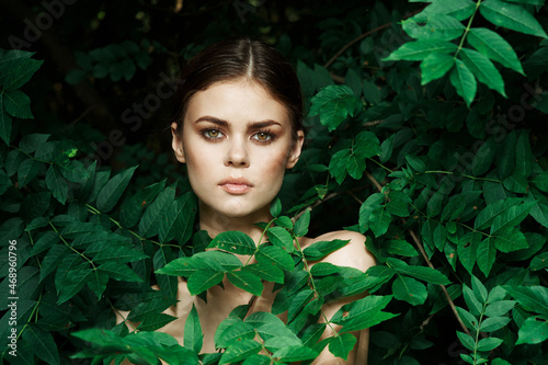 portrait of a woman Cosmetology nature green leaves glamor Lifestyle