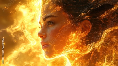 Portrait of a Woman Engulfed in Flames, Symbolizing Inner Strength and Resilience