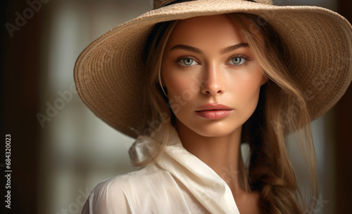 hat, woman, beauty, fashion, summer, face, smile, model, 1, glamour, person, hair, straw, people, lip, lady, smiling, brunette, cowgirl, posing, cute, gorgeous, studio, lifestyle, sensuality