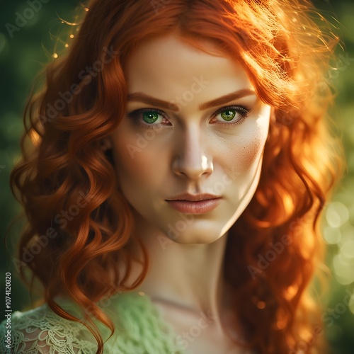 red, green, woman, beauty, hair, face, model, fashion, make-up, eye, glamour, lip, make-up, skin, coiffure, people, person, studio, long, closeup, care, lady, curly, 1, closeup, natural
