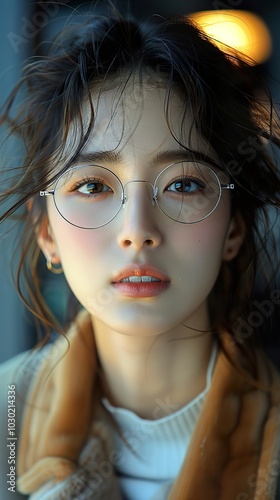 studio, photo, beauty, artistic, calm, fashion, soft light, gentle, casual attire, innocent, indoor, pretty, head shot, attractive, aesthetic, art, sweet, closeup, brown hair, earring, stunning, light, portrait, goggles, long hair, jacket, charme, feminine, style, beautiful, soft focus, sweater, lip, skin, eye, gorgeous, simple, shadow, warm light, peaceful, make-up, model, female, natural, youthful, elegant