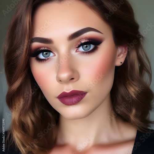 Portrait of a woman with smoky eye makeup and dark lipstick