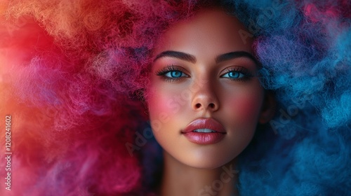 portrait, woman, pink, blue, vibrant, bold, artistic, aesthetic, unique, creative, dynamic, stylish, striking, colourful