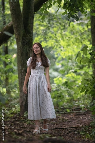woman, beauty, nature, park, summer, forest, hair, people, outdoors, green, person, dress, fashion, tree, face, smile, 1, brunette, model, spring, happiness, lifestyle, outside, lady, lovely, magic, french, girl, historical, cute, delicate, beautiful, ancient, femininity