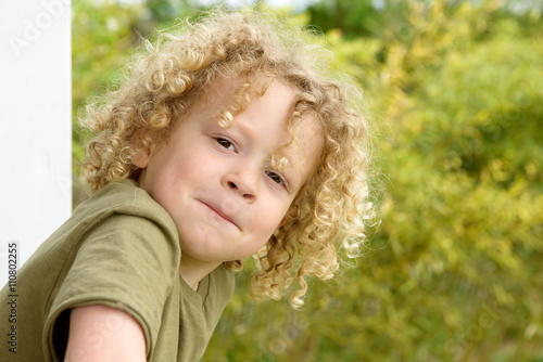 portrait of a young boy with blond curly hair