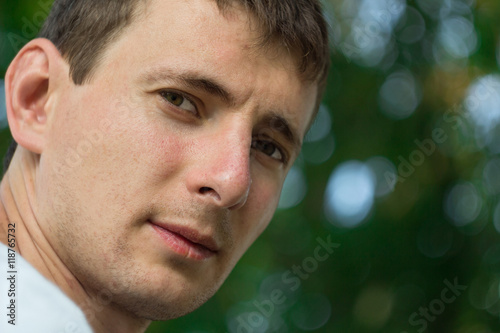 Portrait of a young handsome man looking seriously in the camera