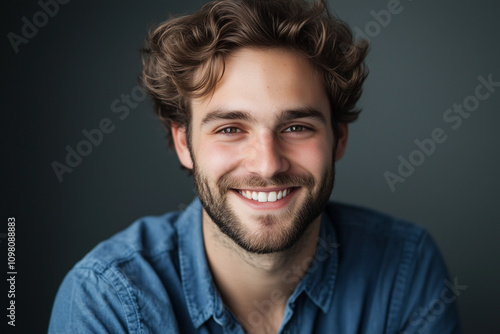 Portrait of a Young Male with a Bright Smile on a Solid Background