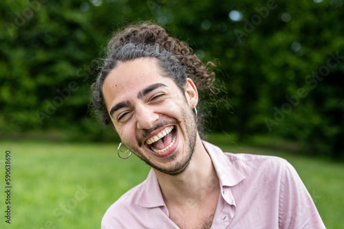 Portrait of a young man with long hair and beard, man of Latin and Caucasian origins