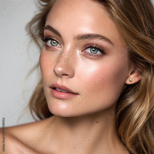 caucasian woman, natural makeup, hi-res, detailed, elegant, premium, realistic, minimalistic, refined