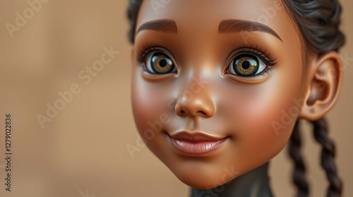 portrait, girl, woman, face, african, attractive, background, beautiful, beauty, black, blue, children, childhood, cute, eye, fashion, female, hair, happy, children, little, look, model, people, person, pretty, smile, style, young, closeup, lip, make-up, eye, skin, doll, closeup, make-up, glamour, head, nose, looking, expression, toy, illustration, ai