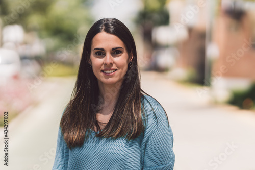female, young, street, portrait, lifestyle, woman, girl, beautiful, attractive, people, person, city, happy, casual attire, fashion, smile, model, urban, modern, pretty, style, caucasian, stylish, adult, beauty, cheerful, confident, hair, face, trendy, summer, looking, carefree, standing, alone, youth, bokeh, season, facing, assertive, proud, future, feminist, blur, selective focus, earring, latin, photographer
