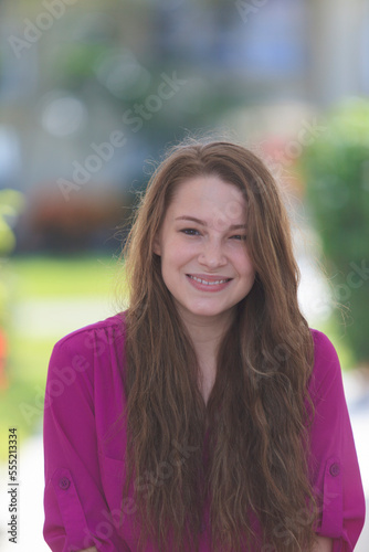 outdoors, day, female, confidence, closeup, happiness, portrait, standing, us, hunt, mark, photo, white, florida, eye contact, long hair, north america, brown hair, missy, beauty, adult, vertical, people, woman, top, smiling, color image, young adult, casual clothes, toothy smile, naples, beautiful woman, front view, half-length