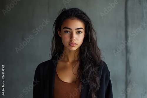 portrait, missy, long hair, natural beauty, minimalist, fashion, beauty, model, ethnic diversity, casual clothes, emotional, closeup, head shot, indoor, lifestyle, confidence, youth, femininity, elegance, artistic, contemporary, serene, stylish, modern, expressive, calm, natural light, individuality, personality, eclectic, woman, minimalistic, office, background, room, copy, space, female