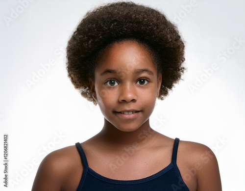 Portrait of African Teenager with Defined Defined Natural Curls on White Background