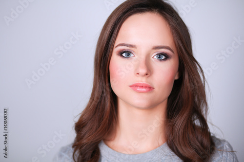 portrait, young, girl, pondering, asian, smiling, fun, fashionable, latino, shirt, belt, dark, cute, looking away, relaxed, female, hispanic, woman, choosing, confident, brunette, pretty, gorgeous, attractive, thoughtful, lady, standing, sensual, blue, person, copy space, cheerful, beautiful, slender, pensive, happy