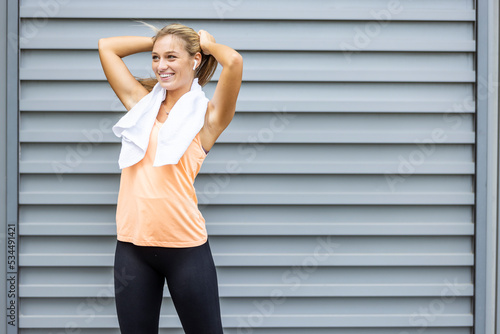 gym, towel, athlete, sport, track and field, white color, adult, adults only, beauty, bottle, care, closeup, drink, exercising, female, hand, healthy lifestyle, horizontal, human age, human hand, human muscle, instructor, one person, people, perfection, photo, portrait, quarantine, refreshment, russia, sex symbol, sports shoe, strength, teeth