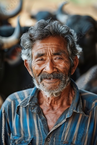 elderly, man, portrait, grey, hair, smile, warm, rural, striped, shirt, closeup, face, wrinkle, mature, senior, outdoors, traditional, lifestyle, human, expression, friendly, beard, eye, natural, background, person, male, aged, countryside, character, authentic, culture, weathered, life events, wisdom, life, story, community, heritage, rustic, people, old, farmer, villager
