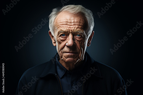 Portrait of an old man with grey hair and beard on a black background