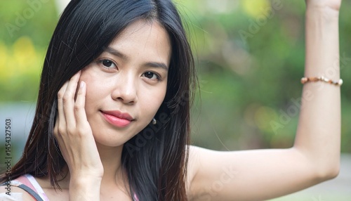 woman, smile, beauty, face, smiling, hair, teenage, people, park, nature, outdoors, person, green, model, 1, lady, outside, eye, brunette, fashion, summer, happiness, teenage, looking