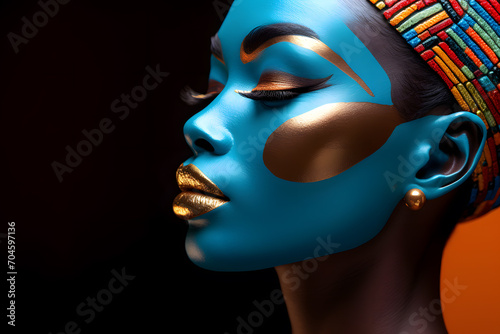 Portrait of Beautiful glamour African woman with colorful make up body art