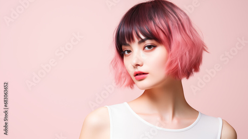 woman, beauty, hair, fashion, model, face, person, make-up, coiffure, studio, skin, smile, make-up, eye, glamour, style, people, 1, pink, closeup, looking, lady, elegance, blond, care