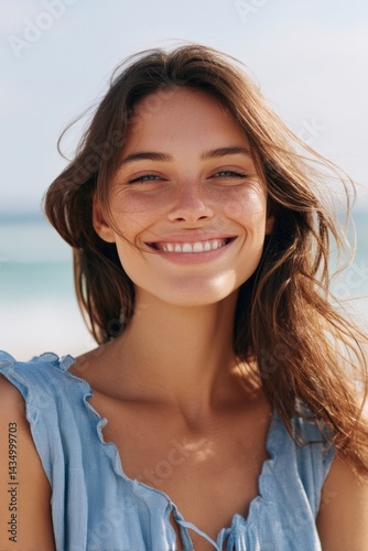 portrait of delighted person enjoying start of summer background softly blurred