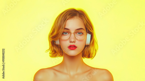 shape, girl, neon, woman, young, retro, style, yellow, hot, model, portrait, modern, attractive, make-up, glamour, beautiful, sunglasses, colours, glasses, studio, hipster, beauty, bright, shine, earphones, music, tint, sexy, face, female, caucasian, light, pop, cover, american, stylish, pretty, goggles, colourful, round, night, lip, closeup, art, people, futuristic, lighting, trendy, cyber
